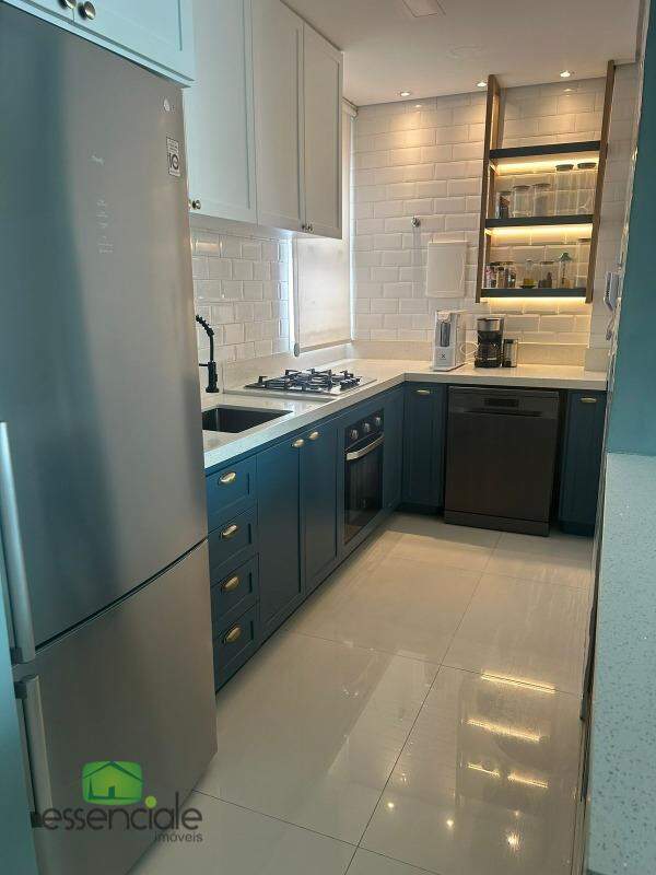 Na cozinha e na sala os armários são laqueados;