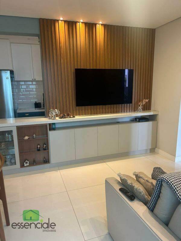 Sala ampla para dois ambientes, cozinha com armários planejados.