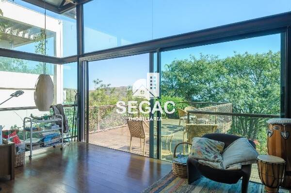 02 Salas amplas com piso em laminado de madeira, lareira, varanda com deck, lavabo, imenso painel de vidro permitindo luminosidade e vista panorâmica, 04 quartos espaçosos com piso em tábua corrida e armários sendo todos suítes, máster com varanda, cozinha espaçosa com bancada em granito e armários planejados, área de lavanderia independente com bancada em granito